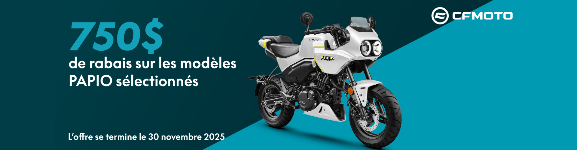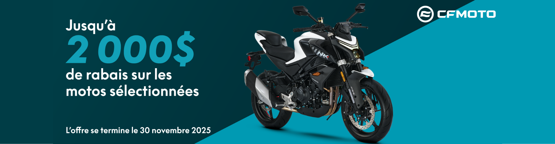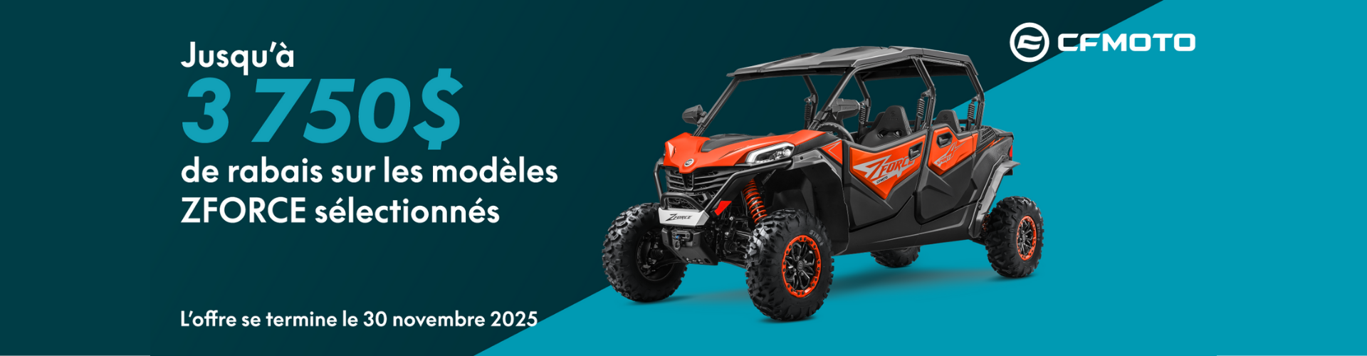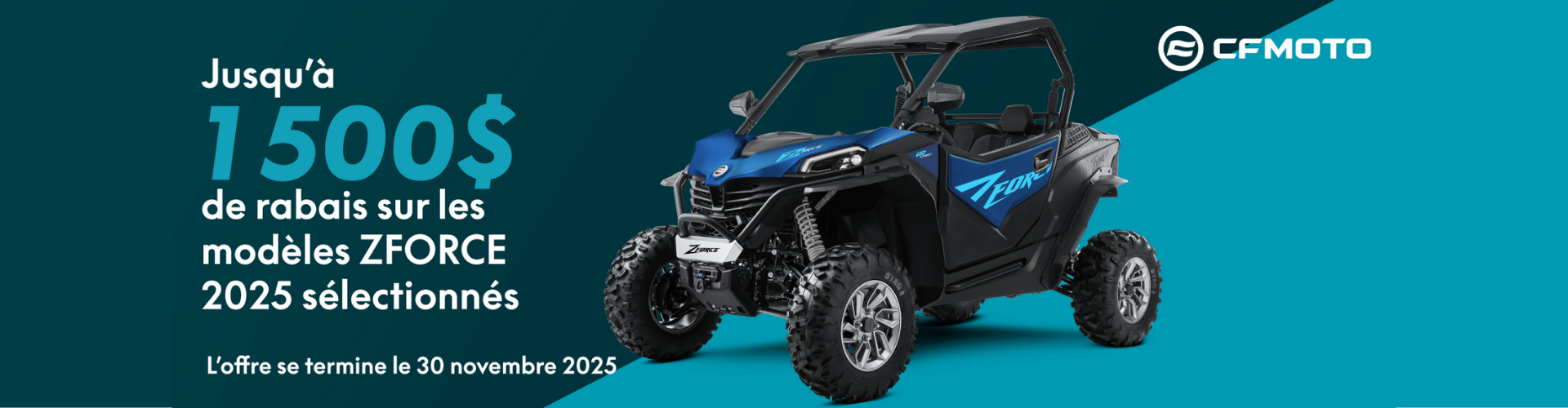 CFMoto fabrique et conçoit des VTT, cote-à-cote et utilitaires compétitifs, fiables et adaptés aux besoins de nos clients québécois. Découvrez leur gamme complète. Vous resterez surpris de la qualité de leur motorisation et de l’évolution de leurs produits!