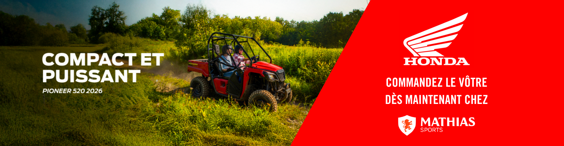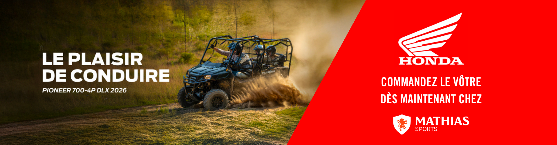 Mathias Sports sur la Rive-Sud de Montréal, à proximité de Brossard et de Sainte-Julie, est un concessionnaire de motos Honda. Vous trouverez ainsi le modèle dont vous rêvez dans notre inventaire de motos à vendre. Vous magasinez pour une moto neuve? Emmenez-nous votre moto d’occasion à vendre et nous pourrons déduire un montant à vos paiements grâce à cet échange.