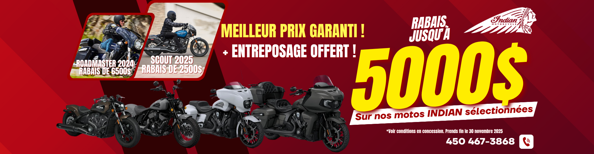 Aujourd’hui, plus de 120 ans plus tard, Indian Motorcycle continue d’innover avec des moteurs puissants comme le Thunder Stroke 111 et le PowerPlus, ainsi que des technologies de pointe intégrées à chaque modèle. Mathias Sports, plus grand concessionnaire Indian Motorcycle au Canada, est fier de vous offrir la gamme complète de ces machines emblématiques, réparties en six catégories distinctes.