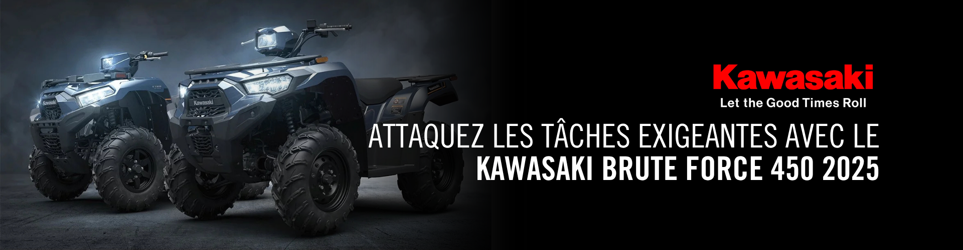 Mathias Sports, concessionnaire Kawasaki Canada, propose également la gamme complète de VTT utilitaires et sportifs avec les séries Brute Force et KFX, ainsi que les gammes de véhicules utilitaires Mule et sportifs Kawasaki Teryx côte à côte.